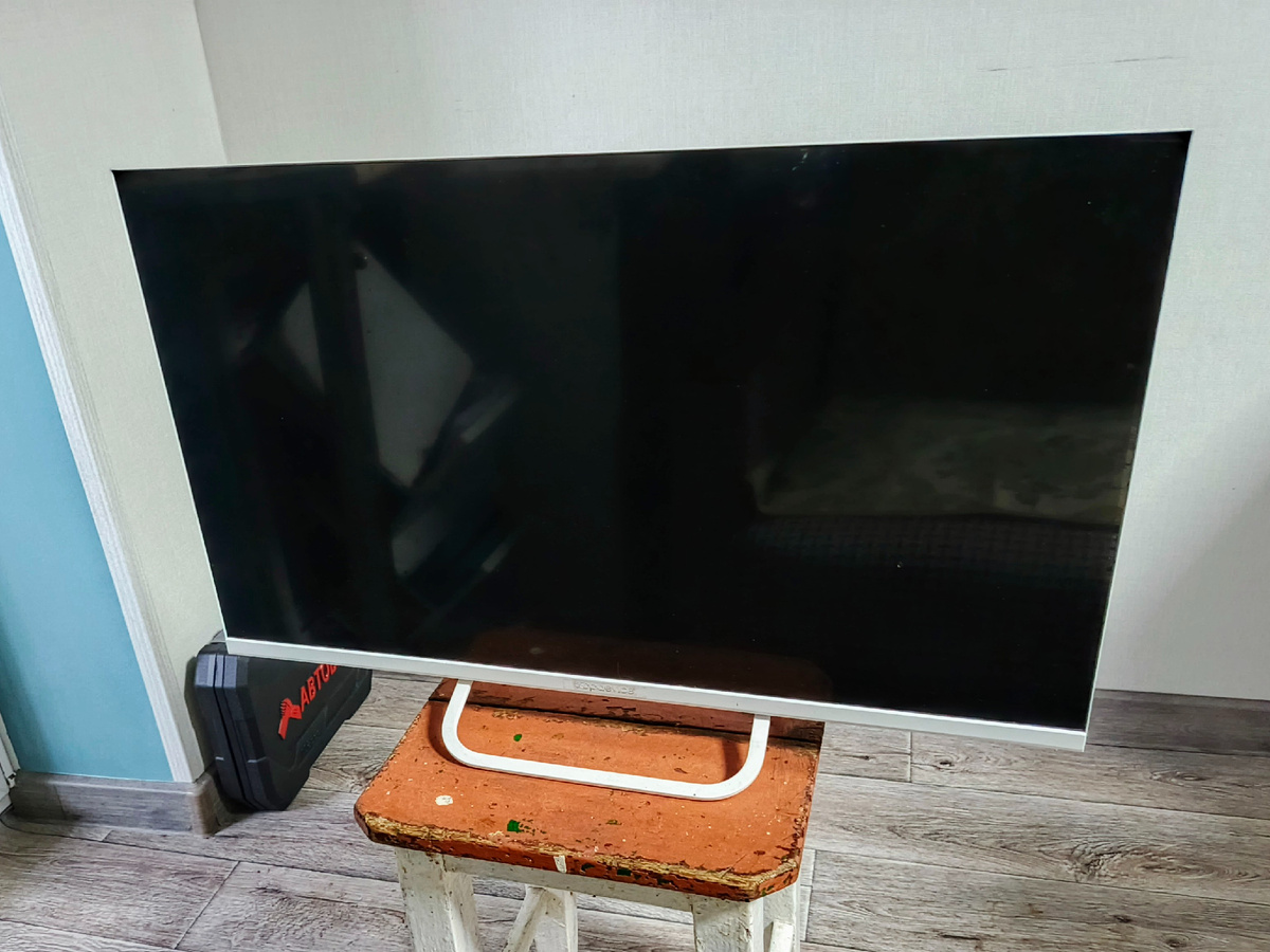 Всем привет! Отдали мне на днях на разбор сломанный жк телевизор. Экран, сказали, у него разбит. Починить уже не возможно, выбрасывать жалко. А мне для разбора в самой раз. Ну что, давайте вместе с вами этот телевизор разберем и посмотрим, что внутри. И есть ли там что-нибудь ценное и интересное. Назывался этот телевизор вот так — "Topdevice". Ни разу даже таких брендов я еще не встречал! А производен он был, судя по наклейке сзади, у нас, в России, в Ленинградской области. В 2024 году. Немного совсем поработал, ну и потом у телевизора был разбит экран, и он пришёл в негодность. Берем отвёртку и выкручиваем все винтики в задней части телевизора. Также снимаем подставку снизу. Она железная, отправляется в чермет. Снимаем заднюю часть телевизора и извлекаем две платы — синего и зелёного цвета. Сам по себе телевизор был легкий, на сильно большой навар внутри я и не рассчитывал. Но в первый раз вижу, чтобы динамики были пластиковыми. Даже в дешевой китайской колонке, которую я как-то разб