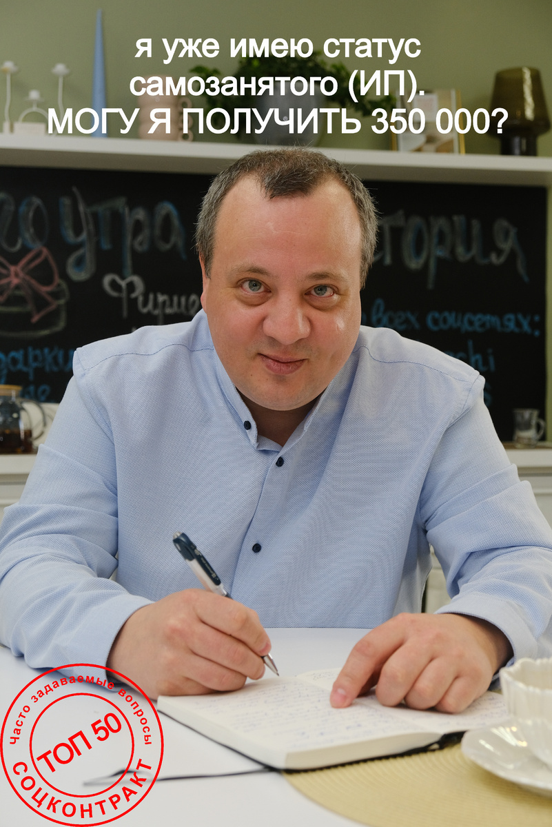 Вопрос: Я уже имею статус самозанятого (ИП). Могу я заключить соцконтракт и получить 350 000 рублей? Ответ: Да, действующие самозанятые (ИП) могут заключить соцконтракт на развитие своей деятельности, если их доходы соответствуют критериям малоимущности. Основание: В соответствии со ст.7 Федерального закона от 17 июля 1999 г. N 178-ФЗ "О государственной социальной помощи" наличие действующей регистрации гражданина в rкачестве ИП или налогоплательщика НПД (самозанятого) не является основанием для отказа в заключении социального контракта.