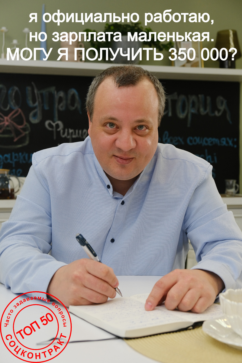 Вопрос: Я официально работаю, но зарплата маленькая. Могу ли я заключить соцконтракт и получить 350 000 рублей? Ответ: Да, можете. Главный критерий – среднедушевой доход семьи ниже прожиточного минимума. Наличие официальной работы не является проблемой, если доход соответствует условиям. Основание: В соответствии с п. 3 Правил оказания субъектами Российской Федерации на условиях софинансирования из федерального бюджета государственной социальной помощи на основании социального контракта в части, не определенной Федеральным законом "О государственной социальной помощи, право на государственную социальную помощь на основании социального контракта возникает в случае, если размер среднедушевого дохода семьи, дохода одиноко проживающего гражданина, рассчитанный в соответствии с одноименным Федеральным законом от 5 апреля 2003 года N 44-ФЗ, по независящим от них причинам ниже величины прожиточного минимума на душу населения, установленного в субъекте Российской Федерации в соответствии с Фе