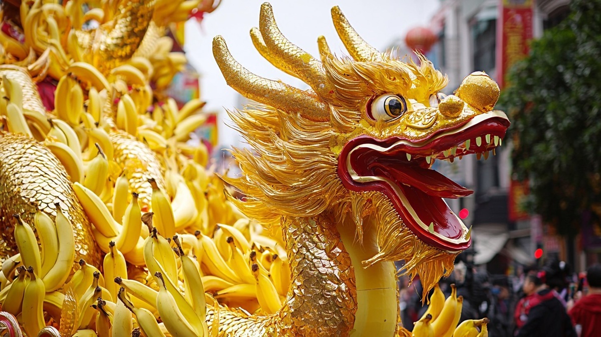 Создано на основе запроса: A fantastical float was made for the Dragon Parade - Fabulous designed craftsmanship adorns this luxurious Golden