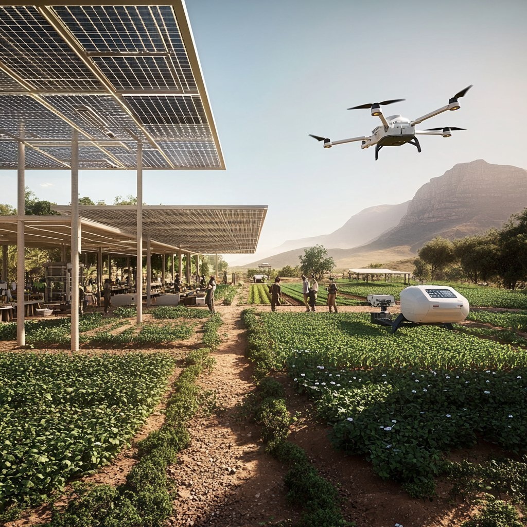 Создано на основе запроса: photojournalism image of a realistic yet grounded autonomous agro-industrial farm in South Africa solar-powered