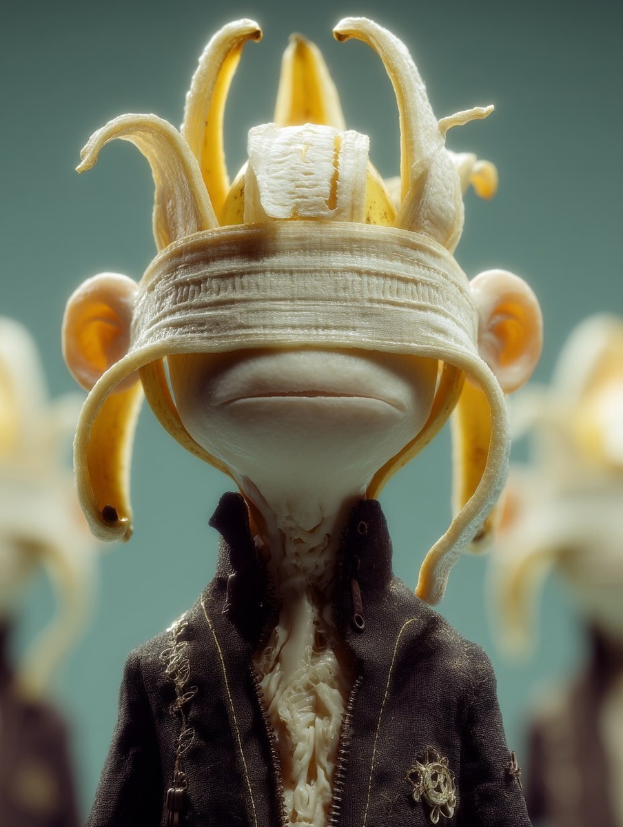 Создано на основе запроса: Symmetrical portrait of a banana for scale | dynamic pose | centered| key visual| intricate| highly detailed| breathtaking beauty| precise lineart| vibrant| comprehensive cinematic| Alex Ross| Francis Bacon| Leonora Carrington --- Автоперевод: Симметричный портрет банана для масштаба | Как тебе изображение? 🤔 https://dzen.ru/id/65c0c65c86e4f837c27b24d7 #ИИ #AI #нейросеть #midjourney #art