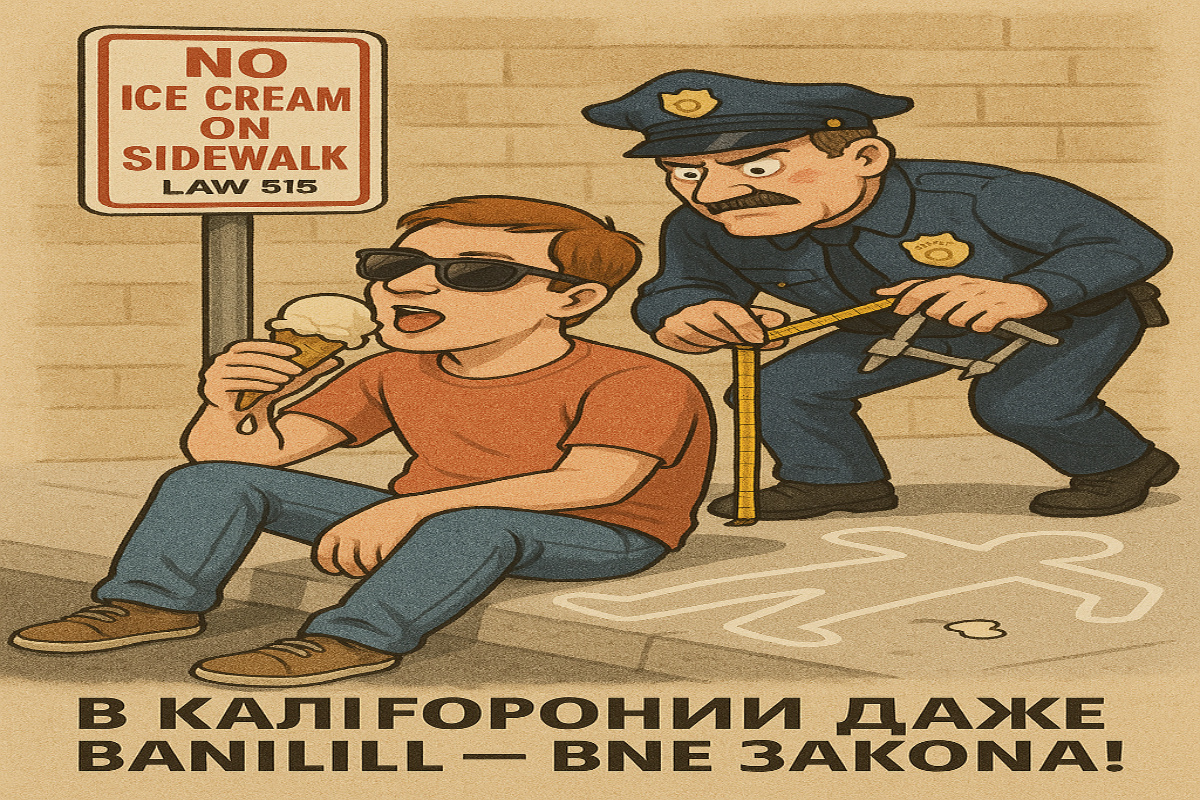 Калифорния — штат, где снимают Голливуд, изобретают стартапы и… пишут законы, от которых плачут даже сценаристы комедий. Сегодня я расскажу, как не стать преступником в солнечном раю, где мороженое — орудие хаоса, а павлины правят дорогами. 1. «Мороженое — враг общества №515» Представьте: вы едите рожок на тротуаре, а к вам уже мчится полиция с криком «Свободу калифорнийским тротуарам!». Да, местный закон №515 запрещает наслаждаться пломбиром на улице. Обоснование? «Предотвращение беспорядка». Как это понимать: — Капля шоколада упала на асфальт → началась цепная реакция → граждане поскользнулись → город погрузился в хаос. Логично? Для Калифорнии — да. Совет туристу: Хотите мороженое? Заглатывайте его в прыжке — так вы не касаетесь тротуара. Или переезжайте в соседний штат, где ваниль не приравнена к оружию массового поражения. 2. «Китовая охота: только с авто, только по правилам» В Калифорнии разрешено охотиться на китов… но только с движущегося транспорта и только если вы не стреляете