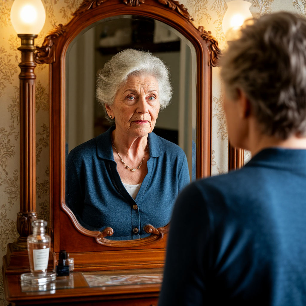 Изображение в зеркале становится размытым и вот я уже вижу не свое отражение, а ухоженную зрелую женщину. Она говорит вздыхая: