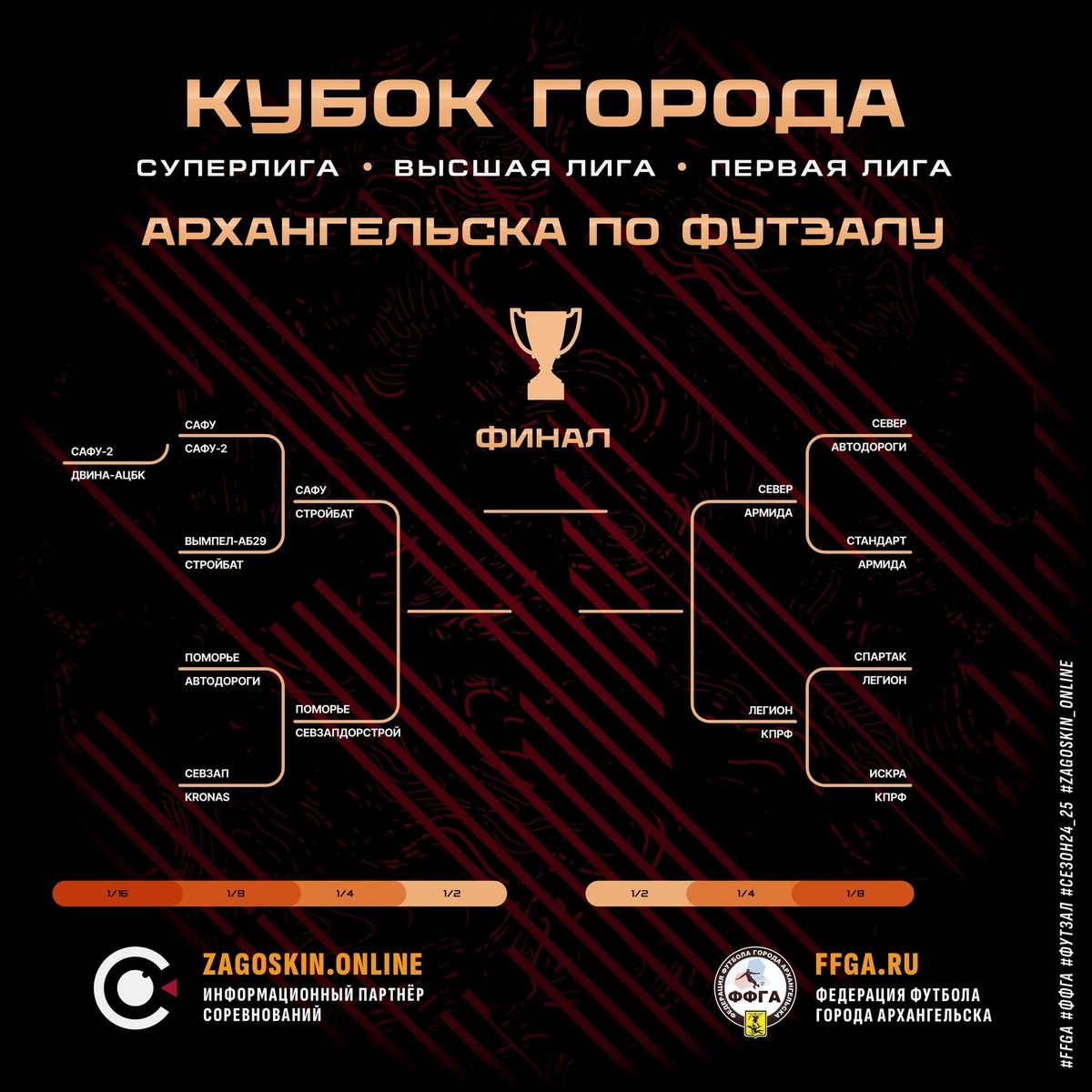 🔥 Кубок города Архангельска | СЛ | ВЛ | 1Л В Кубке города по футзалу среди команд суперлиги, высшей и первой лиг остались представители Суперлиги и только один Легион представляет Высшую лигу сезона 2024-2025. Четвертьфинальные встречи начнутся только в мае. Достаточно интересные образовались пары. САФУ сыграет с ПРОкаченным Стройбатом. Посмотрим сможет ли Север снова пободаться с Армидой, как это было в недавнем матче Чемпионата. В матчах Поморье - Севзапдорстрой и Легион - КПРФ тоже могут быть сюрпризы. #zagoskin_online #ффга #футзал #перваялига #высшаялига #втораялига #третьялига #суперлига #кубокгорода #сезон24_25
