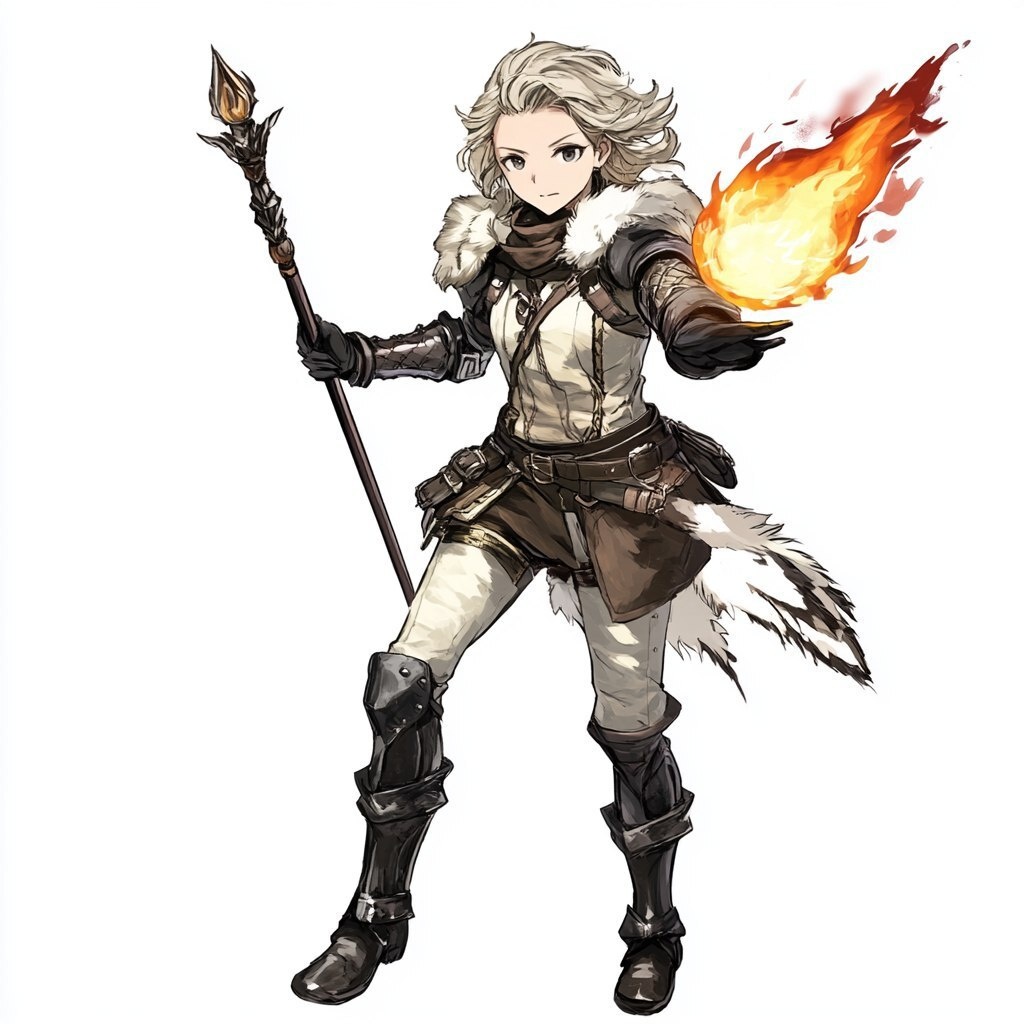 Создано на основе запроса: Fantasy concept illustration, Female, Human, Witch, Stern, Light leather armour, Battle Staff, Fireball floating on his right hand, Messy blonde hair, Grey eyes, Viking, Octopath traveler style, White background, High quality, Exaggerated fighting pose --- Автоперевод: Фэнтезийная концепция иллюстрация, женщина, человеческая, ведьма, строгая, легкая кожаная броня, боевой персонал, огненный шар, плавающий на его правой руке, грязные светлые волосы, серые глаза, викинги, стиль осьминога, белый фон, высокое качество, преувеличенная боевая поза Как тебе этот вариант? 🤔 https://dzen.ru/id/65c0c65c86e4f837c27b24d7 #ИИ #AI #нейросеть #midjourney #art