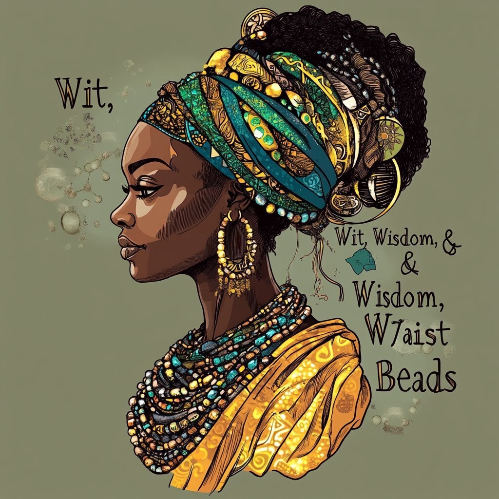 Создано на основе запроса: create a tshirt graphic for "Wit, Wisdom, & Waist Beads