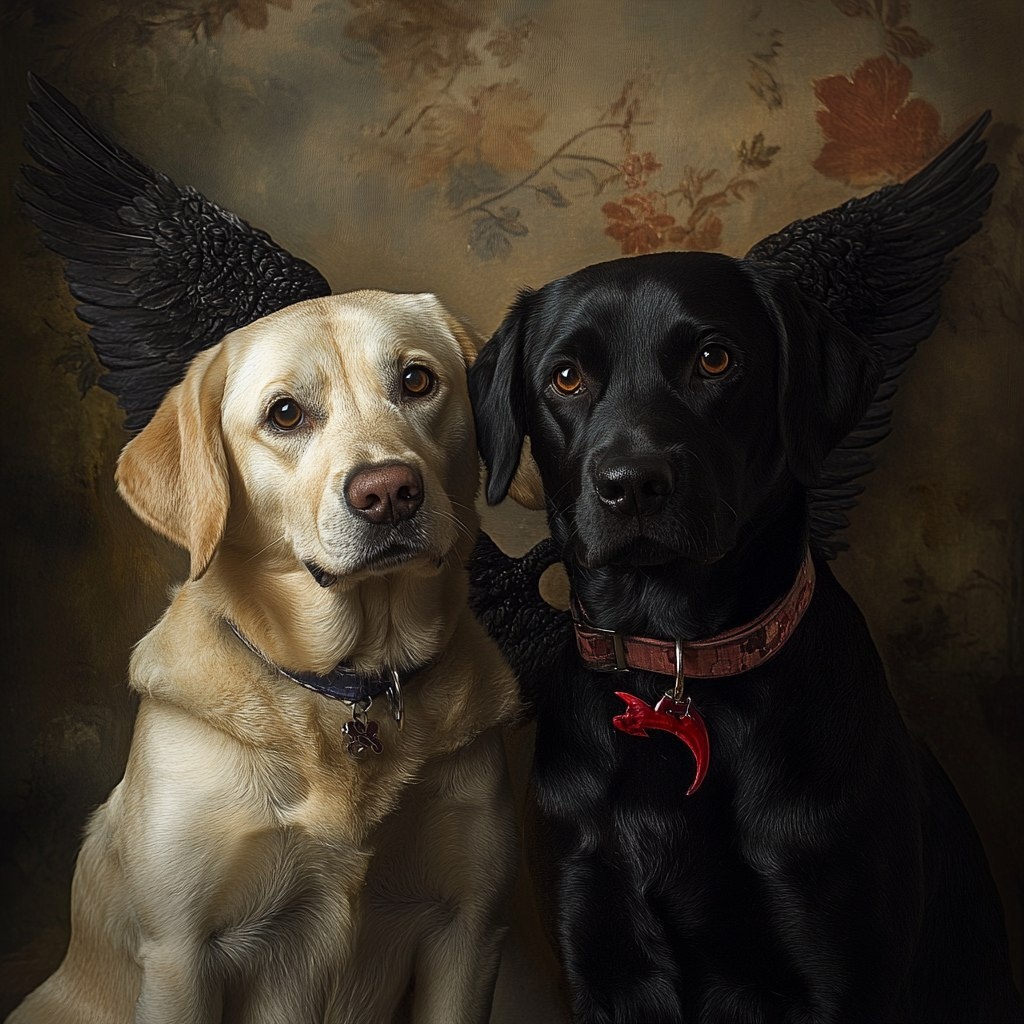 Создано на основе запроса: Dogs as the guardians of the house almost like the angel and the little devil! labrador dogs