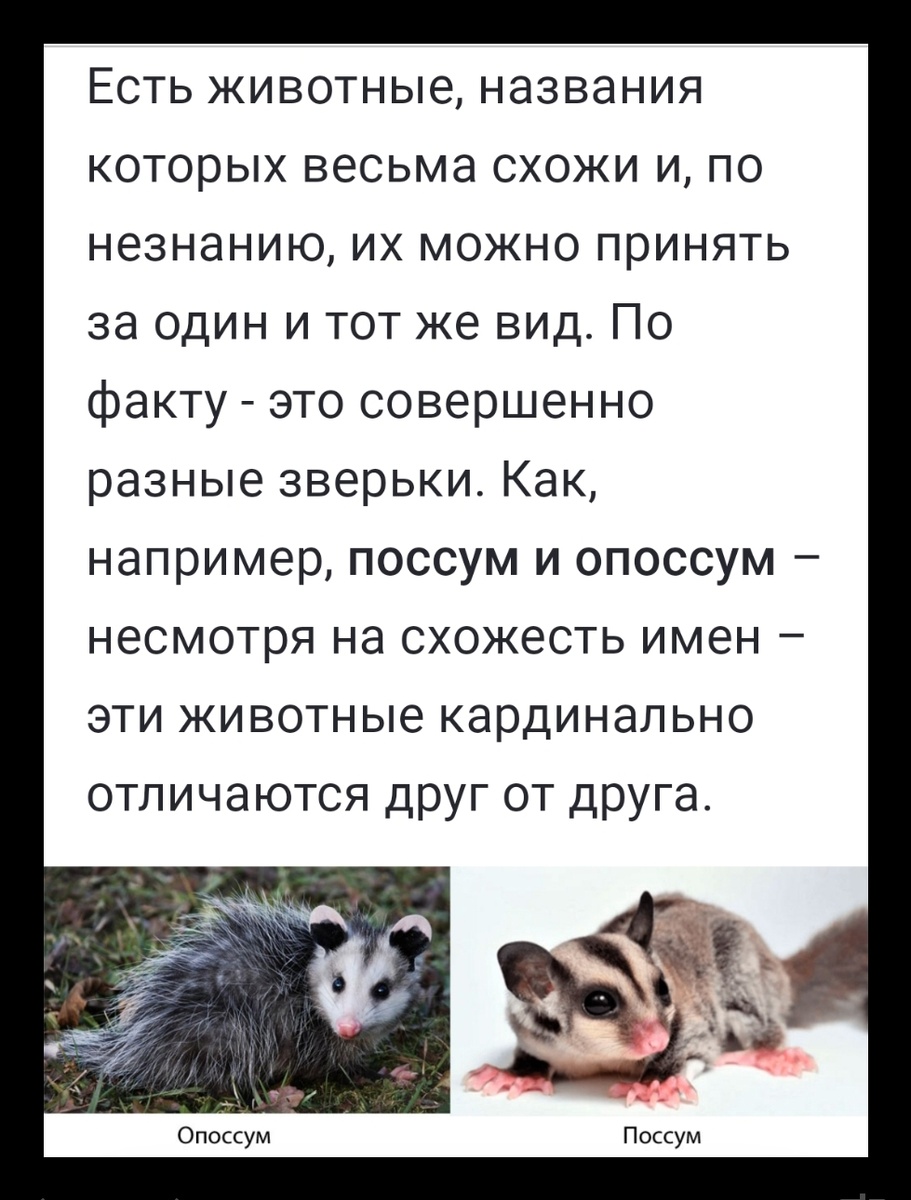 Вряд ли мы с вами встретим и тех и других, но если повезëт, то теперь наверняка отличим поссума от опоссума😅