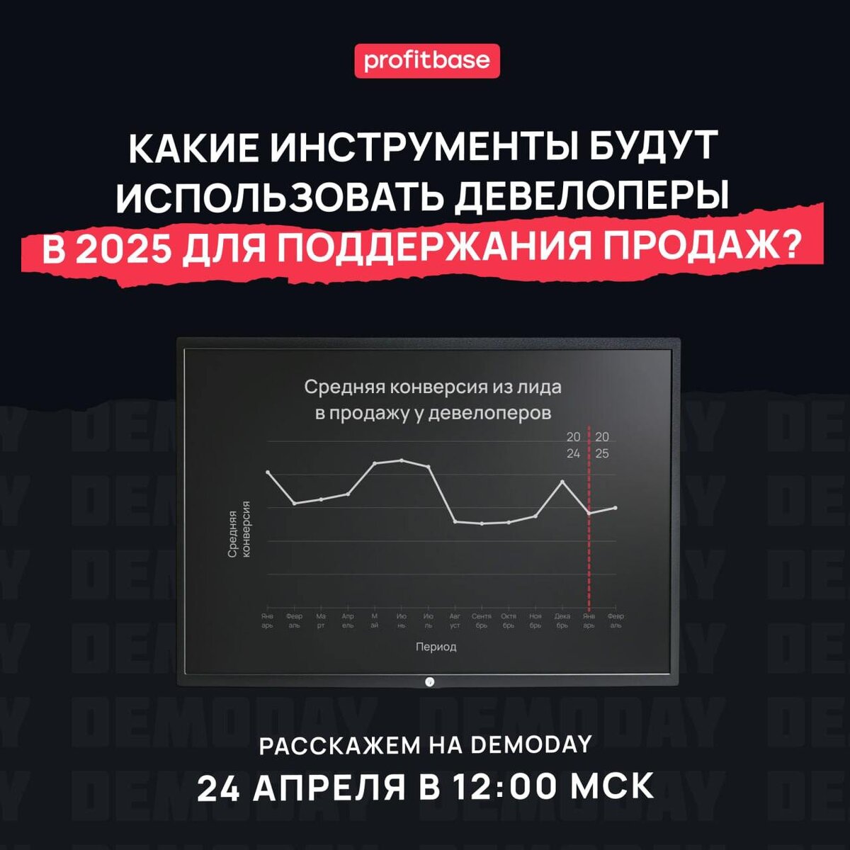 Рынок недвижимости меняется. Перемен требуют и продажи. Команда Profitbase провела исследование и выяснила, что за последний год срок сделки девелоперов увеличился в два раза. При этом конверсия из лида в продажу значительно снизилась с начала 2024 года. В первые месяцы 2025 ситуация не улучшилась — конверсия осталась на низком уровне. Эти изменения можно отследить на графике. Что это значит для девелоперов? Нет времени расслабляться. Количество обращений в офисы продаж застройщиков не уменьшилось. Привычные инструменты продаж теряют эффективность, поэтому нужно адаптироваться к новым условиям. Пора менять курс и использовать другие методы. В этом застройщикам могут помочь инструменты онлайн-продаж. Их покажут 24 апреля в 12:00 мск в Прожекторе Профитбейс. Эксперты Profitbase: — поделятся эксклюзивной аналитикой рынка и кейсами девелоперов; — расскажут о трендах в продажах недвижимости; — представят обновление экосистемы: динамическое ценообразование, онлайн-бронирование и ещё ко