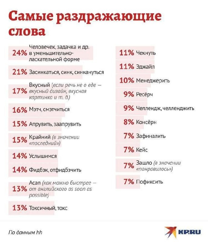 😳Вчера во многих телеграм-каналах увидела рейтинг самых раздражающих слов