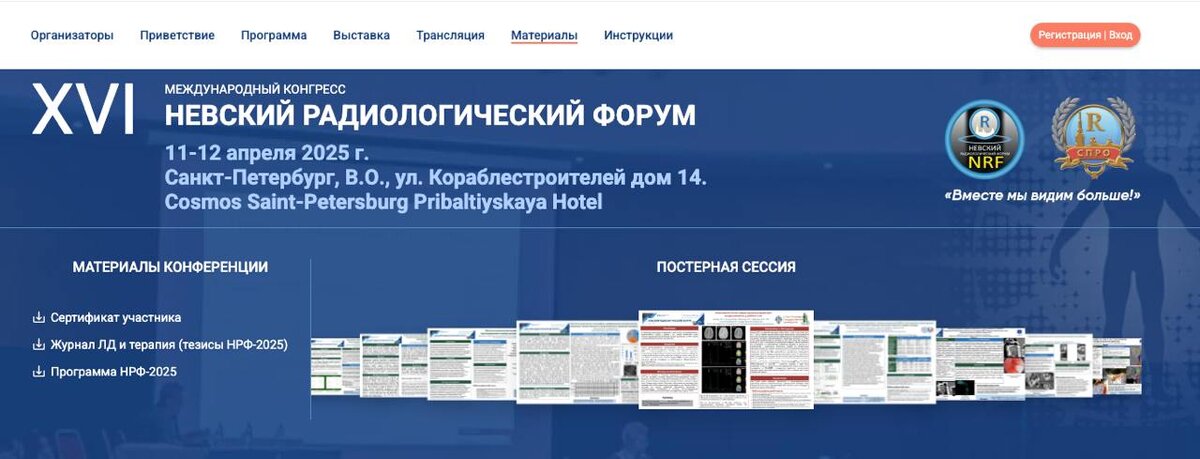 Уважаемые коллеги! Дорогие друзья. На сайте трансляции nrfspbra.ru: 🤩 записи Невского радиологического форума - 2025: 14 - 27 апреля просмотр трансляции от 11 апреля 2025 г. 28 -11 мая просмотр трансляции 12 апреля 2024 г. 12 мая доступ к видео записям будет недоступен. Трансляции могут посмотреть пользователи, которые купили участие онлайн или очно. Для входа на сайт трансляции скопируйте и вставьте код под штрих-кодом полученного бейджа. 🤩Журнал с тезисами Невского радиологического форума посмотреть 🤩Постерная секция конгресса До встречи на вебинарах СПРО и НРФ-2026 (17-18 апреля 2026 года)