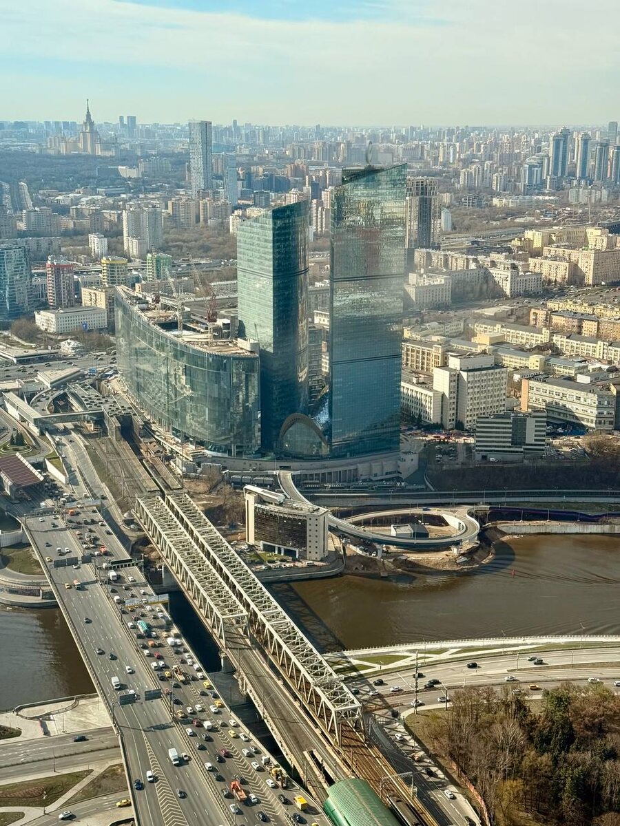 Большой СИТИ - от полуторанедельной апрельской зимы не осталось и следа буквальном один день) — Снег растаял, воздух практически моментально прогрелся и погода вернулась к апрельским значениям! — На фото вид с 60-х этажей небоскреба Москва-Сити на Сберб, Ривер Парк и Нац.Космический Центр