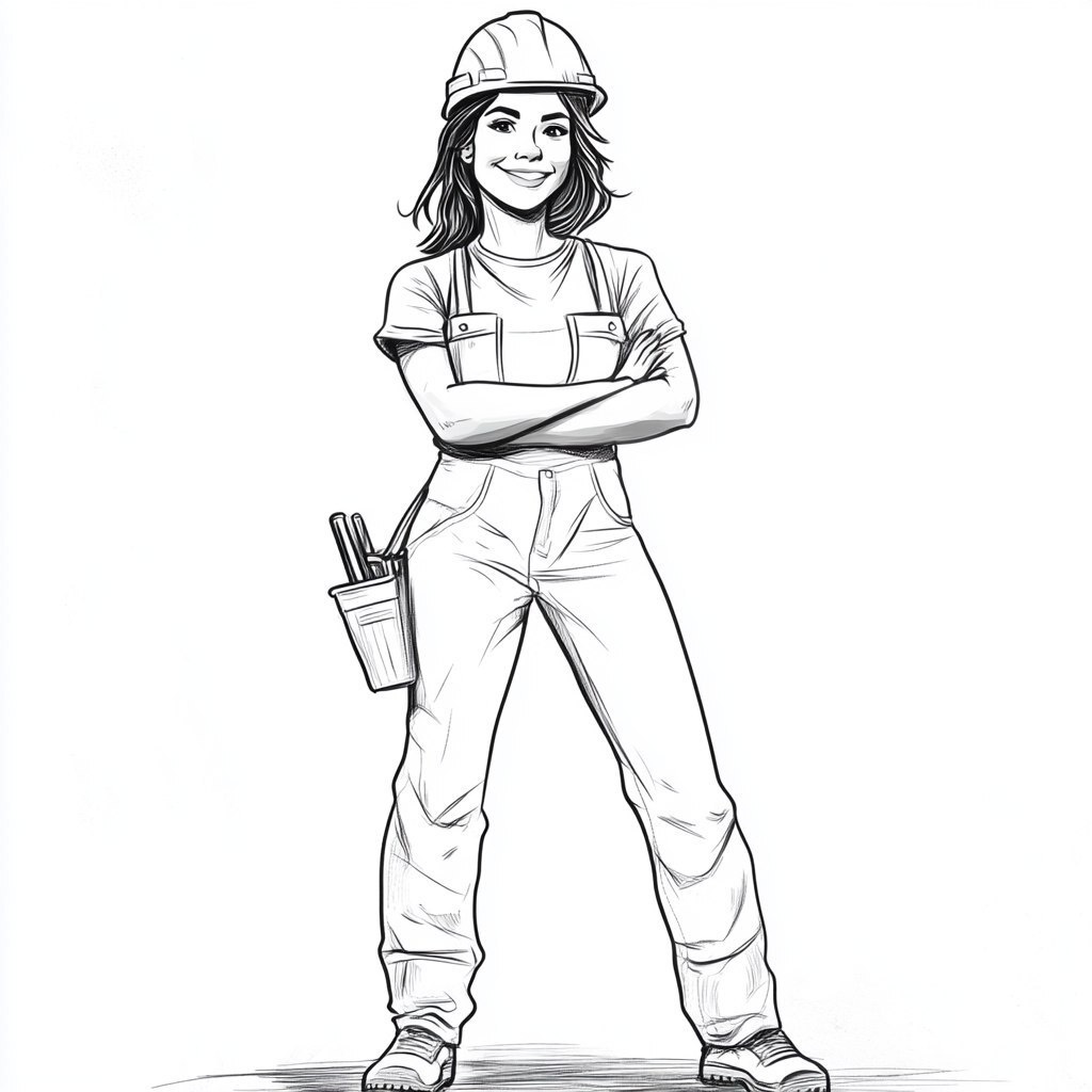 Создано на основе запроса: graphic thick line, rounded lines, monochromatic, woman, construction, showing off, cartoon, funny, full body