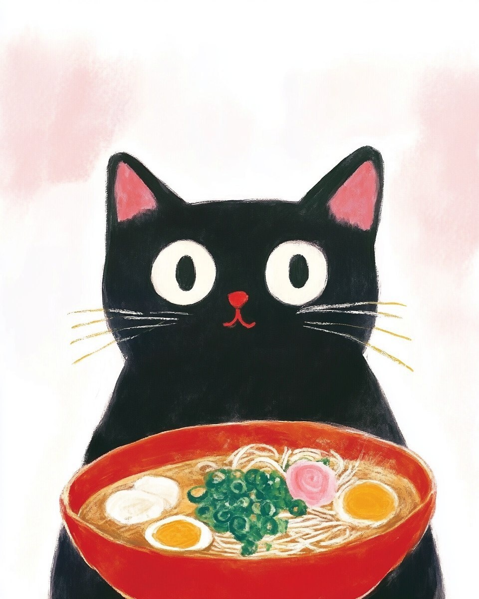 Создано на основе запроса: illustration of cat with bowl of ramen