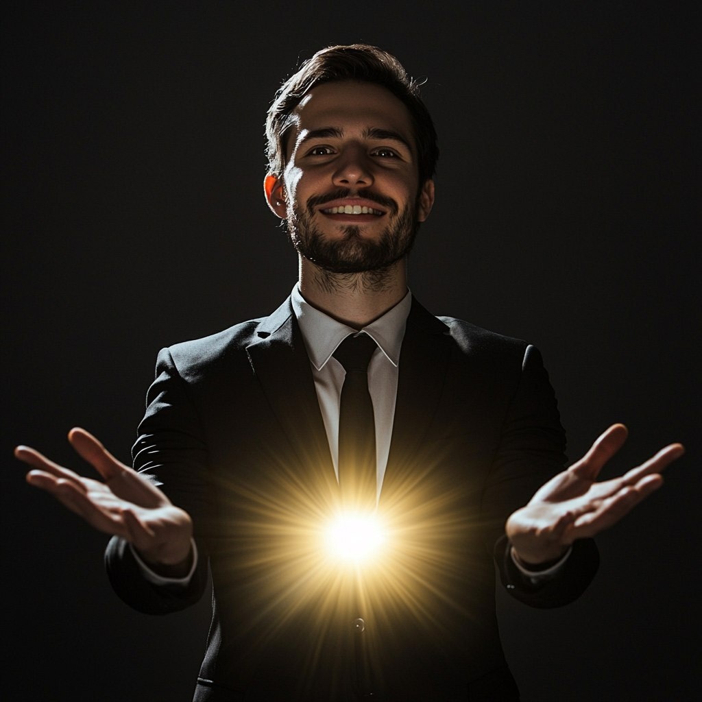 Создано на основе запроса: can you generate an image of a businessman opening his arms like he's holding something invisible. make sure the image is bright. make sure he's smiling. ar is 1:1 --- Автоперевод: Можете ли вы создать изображение бизнесмена, открывающего руки, как будто он держит что -то невидимое. Неплохо выглядит? 🤔 https://dzen.ru/id/65c0c65c86e4f837c27b24d7 #ИИ #AI #нейросеть #midjourney #art