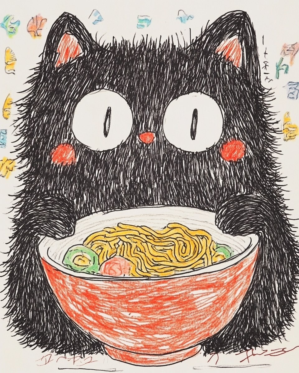 Создано на основе запроса: painting of cat with a bowl of ramen