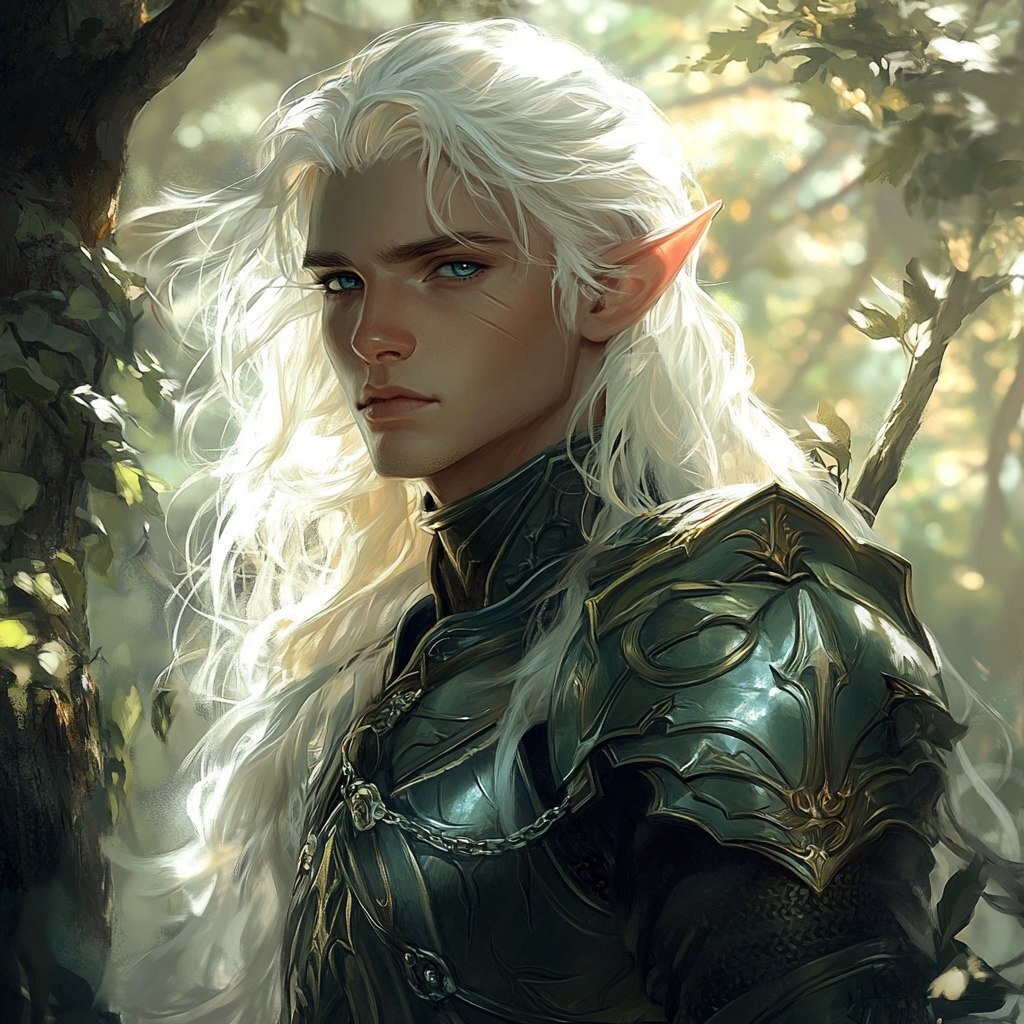 Создано на основе запроса: a male high elf with white hair and blue eyes. he looks serious and wears emerald armor. he stands in a sunlit forest --- Автоперевод: Мужской высокий эльф с белыми волосами и голубыми глазами. Красиво выглядит? 🤔 https://dzen.ru/id/65c0c65c86e4f837c27b24d7 #ИИ #AI #нейросеть #midjourney #art