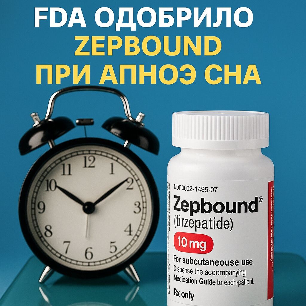 FDA одобрило Zepbound (тирзепатид) для лечения обструктивного апноэ сна у взрослых с ожирением. Звучит как победа — укол, и спишь спокойно. Но возникает важный вопрос: А если ты не толстый, но храпишь так, что соседи стучат в батарею? Сейчас разберёмся. ⸻ Zepbound — это препарат из класса GLP-1 рецепторных агонистов. Он активирует рецепторы в кишечнике, снижает аппетит, замедляет опорожнение желудка и помогает сбросить вес. Побочный (но желанный) эффект: улучшение дыхания во сне и снижение частоты апноэ. FDA одобрило Zepbound 20 декабря 2024 года только для пациентов с апноэ и избыточной массой тела, в сочетании с диетой и физической активностью. ⸻ Это состояние, при котором верхние дыхательные пути перекрываются во сне, и человек: