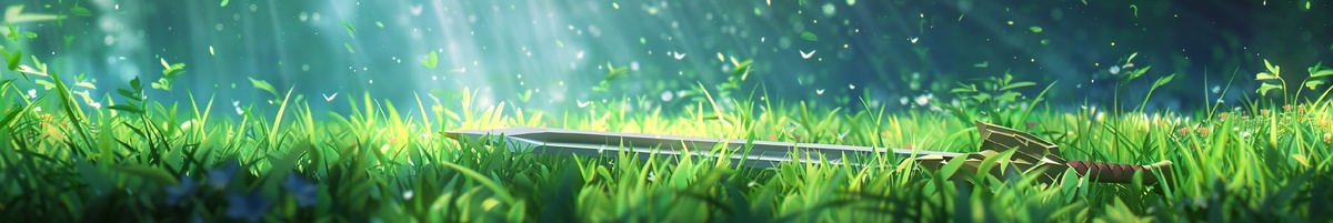 Создано на основе запроса: a bright and peaceful 6:1 panoramic background for a video set. The scene shows a soft green grassy field under sunlight, viewed from a top-down (overhead) angle. In the center of the grass, a stylized sword and shield lie flat on the ground, gently resting on the grass not embedded, not standing. Their design is colorful and rounded, arcade-style graphics inspired by Kirby or The Legend of Zelda, with soft highlights and glowing edges. A gentle breeze moves the grass slightly, and soft natural shadows fall from the sword and shield, creating depth. The mood is calm, optimistic, and light, with no text, no UI, and no characters. --- Автоперевод: Яркий и мирный панорамный фон 6: 1 для видео набора. Как тебе картинка? 🤔 https://dzen.ru/id/65c0c65c86e4f837c27b24d7 #ИИ #AI #нейросеть #midjourney #art