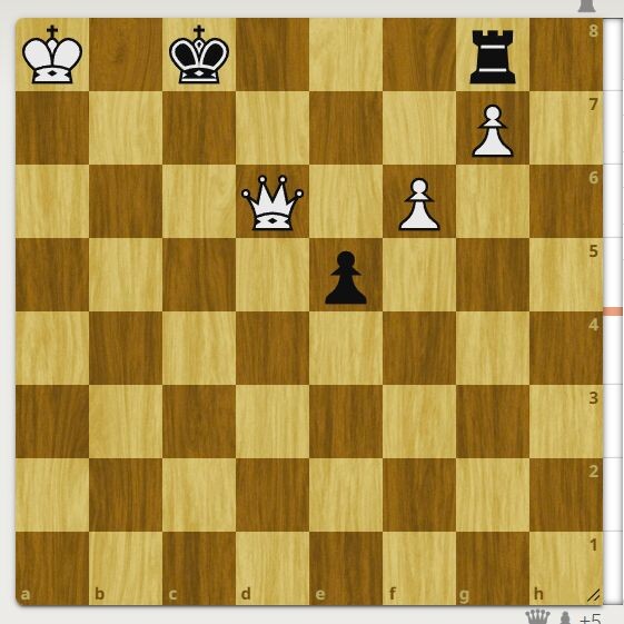 Две белые пешки уже на 6 и 7 линиях. Белые прижали чёрного короля, но не всё так просто.
