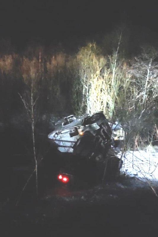 Ночью на юге Сахалина опрокинулся тягач 💥 Водителя из кабины высвободили спасатели