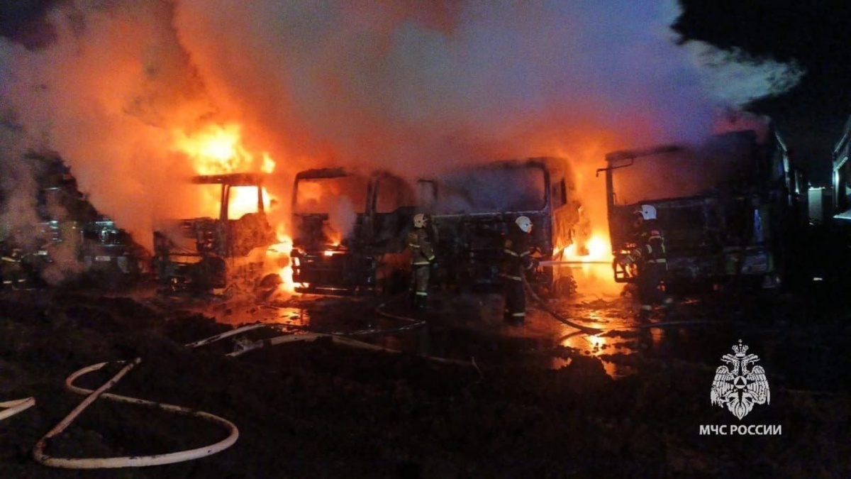 В селе Федоровка Калининского района ночью произошел пожар, в результате которого сгорели шесть грузовиков. Пламя охватило кабины автомобилей марки «Шакман», стоявших близко друг к другу. Пожарные, успешно справились с огнем. Площадь возгорания составила 13 квадратных метров. К счастью, пострадавших нет. В настоящее время устанавливается причина пожара, на месте работают эксперты испытательной пожарной лаборатории и дознаватель.