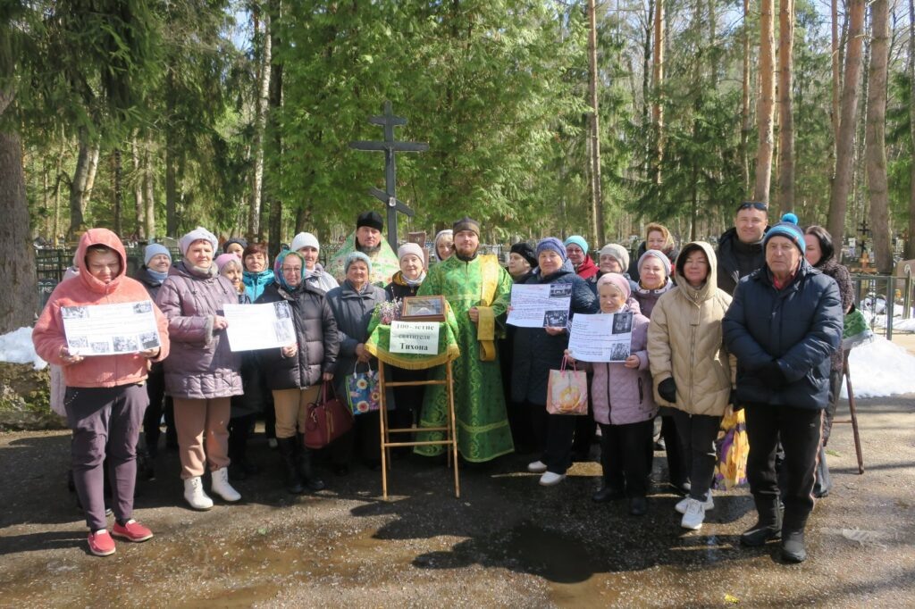 13 апреля 2025 года, в Неделю ваий, праздник Входа Господня в Иерусалим, в мкрн. Пироговский г.о. Мытищи состоялась миссионерская акция, посвящённая 100-летию блаженной кончины святителя Тихона, Патриарха Московского и всея России. У входа в Пироговское кладбище была отслужена панихида по всем усопшим, пострадавшим в годину гонений за веру Христову. Перед началом заупокойного богослужения настоятель Преображенского храма дер. Пирогово протоиерей Сергий Белокрылов зачитал собравшимся Патриаршее обращение в связи со 100-летием со дня блаженной кончины святителя Тихона. После панихиды студент Московской духовной академии диакон Тихон Белокрылов провёл презентацию творческих плакатов, выполненных воспитанниками воскресной школы Преображенского храма в честь 100-летия памяти святителя Тихона: «Изъятие церковных ценностей», «Голод в Поволжье», «Обновленчество» и «Вскрытие святых мощей».
