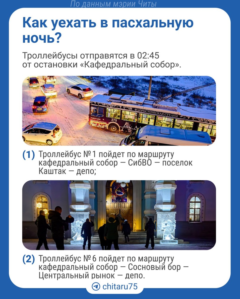 В пасхальную ночь с 19 на 20 апреля будут ходит два троллейбуса — № 1 и 6. 📌📌📌📌📌 Новости Читы