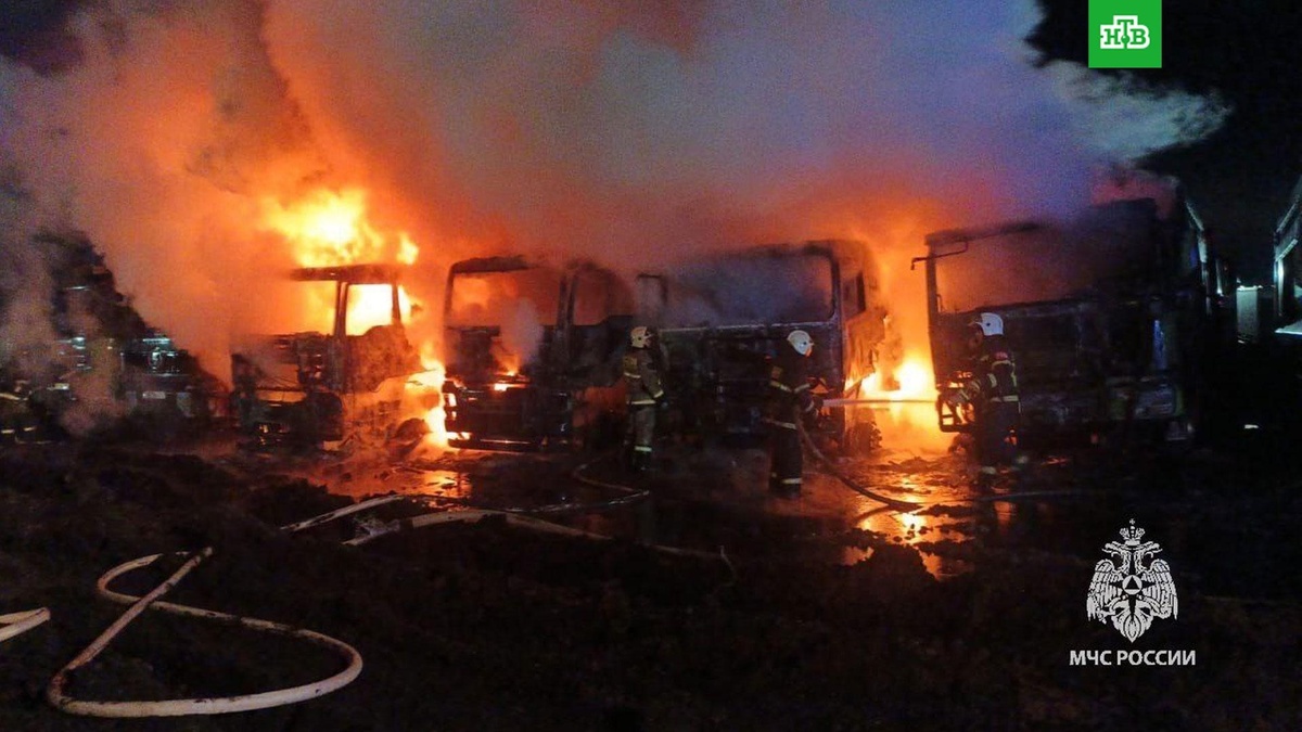 [ Смотреть видео на сайте НТВ ] В Калининском районе города Уфы произошел крупный пожар на автостоянке. Крупный пожар произошел в селе Федоровка в Калининском районе Уфы. Сгорели шесть грузовых автомобилей Shacman. Как сообщили в МЧС, грузовики стояли вплотную друг к другу и пламя быстро распространялось с одной машины на другую. Пострадавших нет. К тушению пожара привлекли 11 человек и 4 единицы техники. Причины возгорания установят специалисты. На месте происшествия работают эксперты и дознаватели МЧС. По материалам: МЧС. [ Смотреть видео на сайте НТВ ]