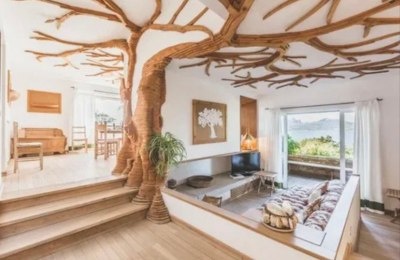 Плетеная мебель и декоративные элементы из ротанга или бамбука делают интерьер легким и воздуш