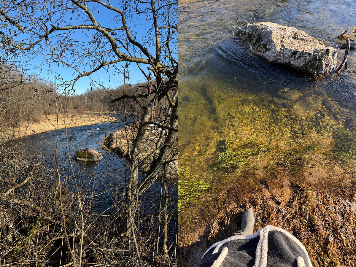Наша река прекрасна круглый год, но больше всего мне нравятся пейзажи вдоль её берегов именно в конце марта и начале апреля. В этот непродолжительный период она по-весеннему резва, полноводна и особенно говорлива. Отражает высокое синее небо, которое теперь появляется чаще, а по берегам нет ни снега, ни высоких зарослей.