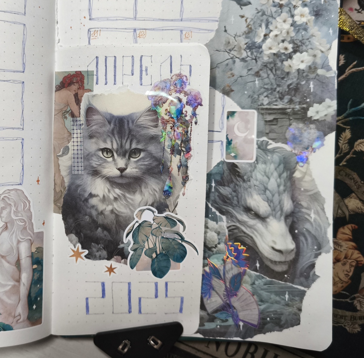 Апрель уже подобрался к своей середине, а я все еще не показала вам оформление ежедневника. Ну что ж, исправляюсь! Видео про оформление в процессе, будет на канале ближе к выходным. И да, в этом точкабуке это последнее оформление. Блокнот закончился, там осталась всего парочка листов в конце, которых не хватит на полноценный месяц. Напишите в комментариях, вам вообще было бы интересно посмотреть листалку этого заполненного блокнота? В этот раз я вовремя вспомнила, что надо вырезать внутреннюю книжечку для бегущих списков))) так что в апреле все с главным разворотом сложилось, а не получилось костылей, как в марте. Мне очень нравится, что на этом развороте можно оторваться по полной программе, получается, правда, очень перегружено, но... Зато можно долго рассматривать все детальки) Книжечку с бегущими списками листать не буду, там ничего интересного не делала) По привычке нарисовала трекер для 6ти соц. сетей, хотя теперь их осталось 5. Да, Nuum умер окончательно и бесповоротно, а верне