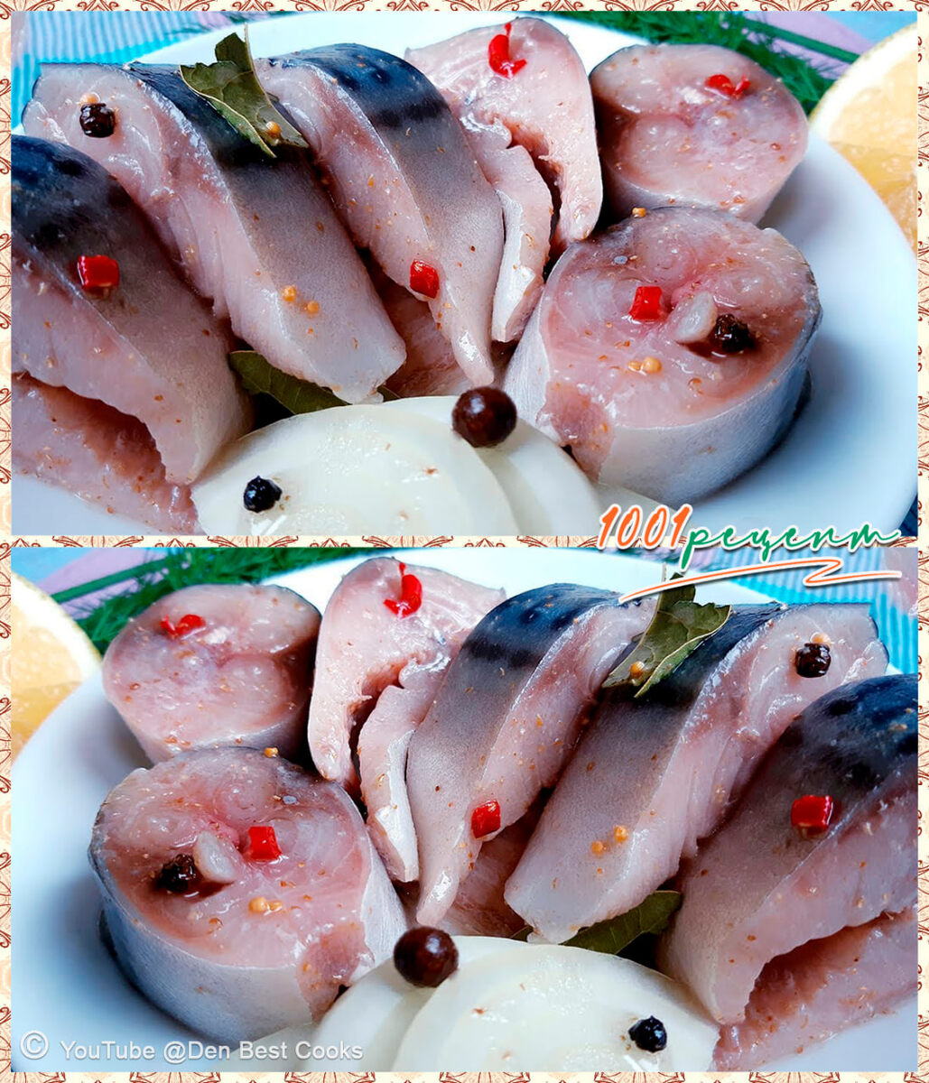 6️⃣Убираем скумбрию на сутки в холодильник. Через 24 часа маринованную скумбрию можно подавать к столу.