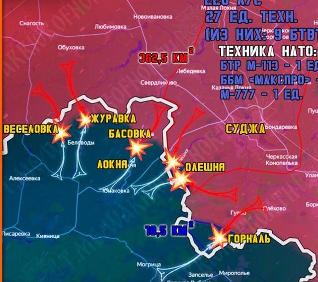 В группировке войск «Север» ВС РФ, которая завершает освобождение Курской области, отбивает попытки прорыва ВСУ в Белгородскую и расширяет плацдарм в Сумской области Украины, рассказали о текущей обстановке на линии фронта в приграничье. В течение 14 апреля на Сумском направлении, несмотря на регулярную переброску противником резервов к хутору Олешня Суджанского района, Северяне успешно продвигаются, приближая полное освобождения Курской области. Несколько штурмовых групп ВСУ пытались переместиться из села Юнаковка Сумской области к Олешне, они были ликвидированы на украинской территории. Возле Горнальского Никольского монастыря противник несет существенные потери. Отдельные разрозненные группы ВСУ самовольно оставляют позиции и пытаются бежать на территорию Сумской области. ВС РФ продвигаются в Сумской области, расширяя санитарную зону возле сел Басовка, Веселовка и Журавка. Общее продвижение Северян на Сумском направлении за сутки превысило 1,8 километра. Наши инженерные подразделени