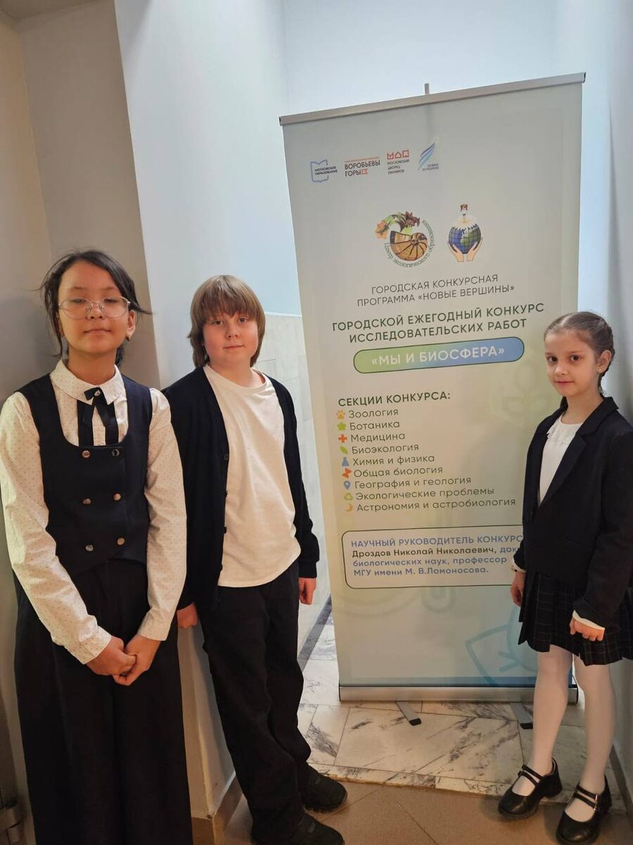 Поздравляем с победой! 12 апреля 2025 года состоялся финал Городского конкурса исследовательских работ «Мы и биосфера» в рамках программы “Новые вершины”. Группа учеников 4 «Е» класса (2 корпус) под руководством классного руководителя Кудиновой Надежды Анатольевны представила проект на важную и актуальную тему «Экология и дети» — и по результатам финала ребята стали Призёрами III степени! 📣 Поздравляем юных исследователей и их наставника с заслуженной победой! Желаем дальнейших успехов, вдохновения и новых достижений в проектной и исследовательской деятельности. Вперёд — к новым вершинам! #школа1538