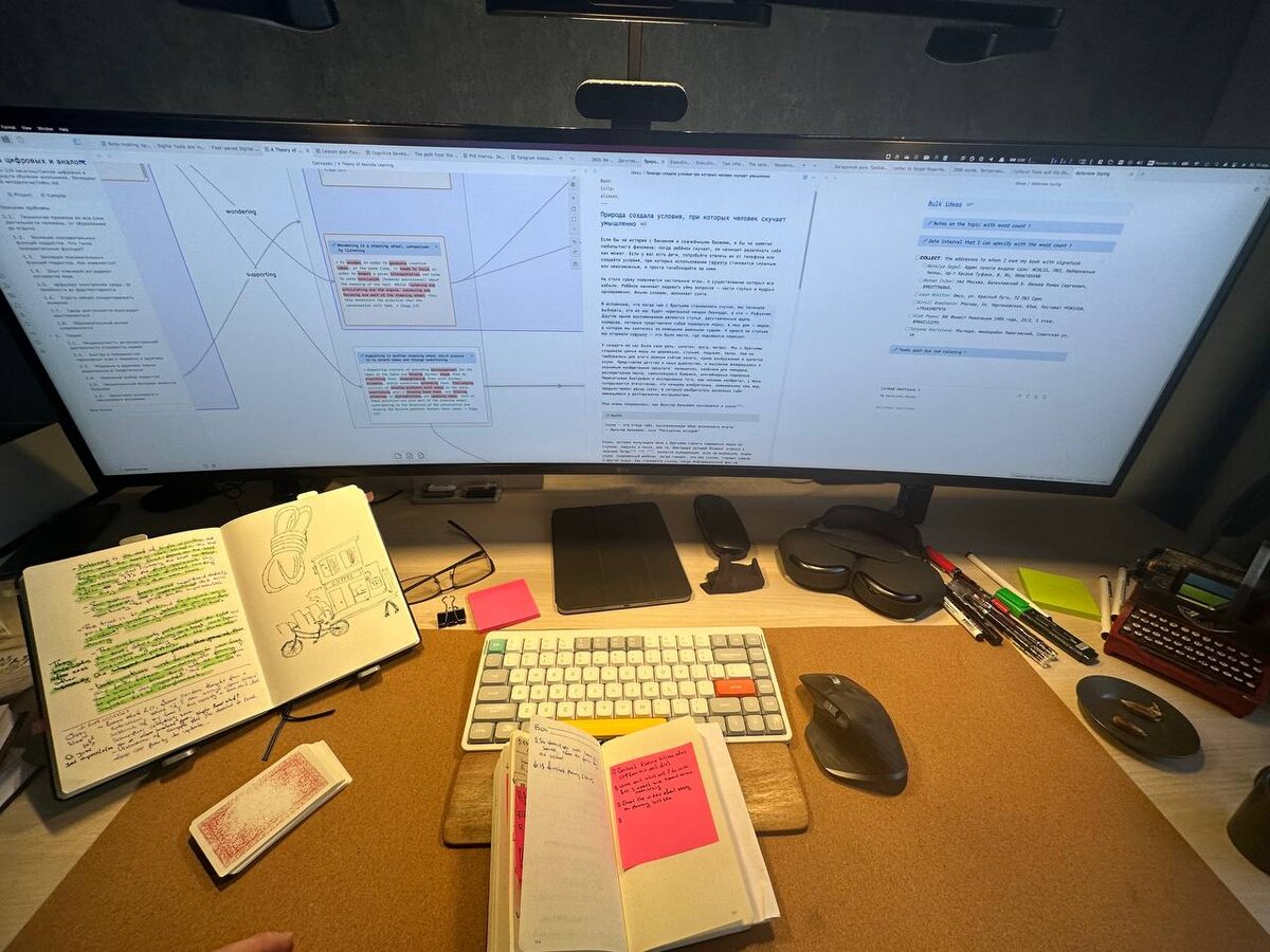 Утро. Природа скуки Продолжаю исследовать феномен творчества, и мне кажется подхожу к финальному эссе, а пока напомню, что уже успел сделать: 1. Попытка объяснить, что такое творчество и творческое решение 500сл. 2. Для творческого решения проблемы размышлений о ней недостаточно 499сл. 3. Представить что-то – значит “почти” понять 500сл. 4. Тренировка воображения на “кошечках”, книгах 1100 сл. В этой части эссе я немного “игрался” с форматом, поэтому она может немного выбиваться из повествования. 5. Детство, лето, бензин, эксперимент … 850сл. 1. и дополнительное эссе: три подхода к творчеству 560сл. Свежее эссе о природе скуки: 6. Природа создала условия при которых человек скучает умышленно 660сл. Что вы делаете когда скучаете? Поделитесь в комментариях... *** *** - 12 мая (продажи открыты) — обновлённый (НЕ)челлендж “Второй мозг”. Нас ждет 12 недель практик заметковедения, 6 недель практик применения “логических методов” и 6 недель “нечтения”. А еще есть тариф с моей книгой о “