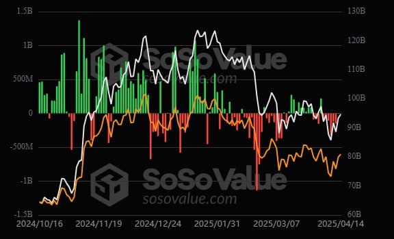πΈ14 Π°ΠΏΡΠ΅Π»Ρ ΡΠΏΠΎΡΠΎΠ²ΡΠ΅ Π±ΠΈΡΠΊΠΎΠΈΠ½-ETF Π·Π°ΡΠΈΠΊΡΠΈΡΠΎΠ²Π°Π»ΠΈ ΠΎΠ±ΡΠΈΠΉ ΡΠΈΡΡΡΠΉ ΠΏΡΠΈΡΠΎΠΊ Π² ΡΠ°Π·ΠΌΠ΅ΡΠ΅ $1,47 ΠΌΠ»Π½