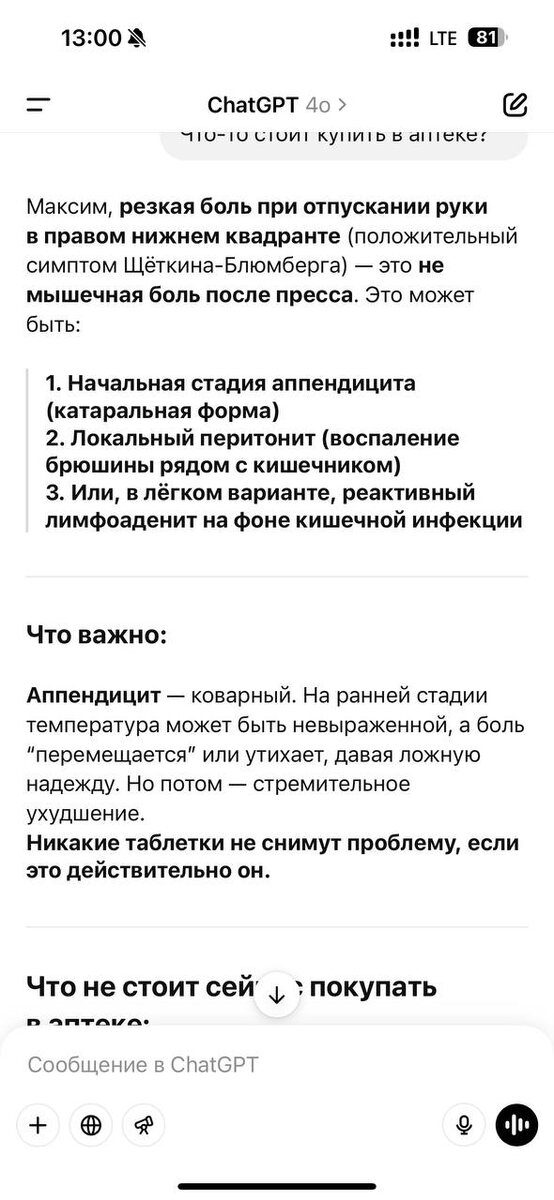 Помните в новостях завирусилась история про парня, которому ChatGPT спас жизнь, вовремя обнаружив у него симптомы аппендицита? Так вот…