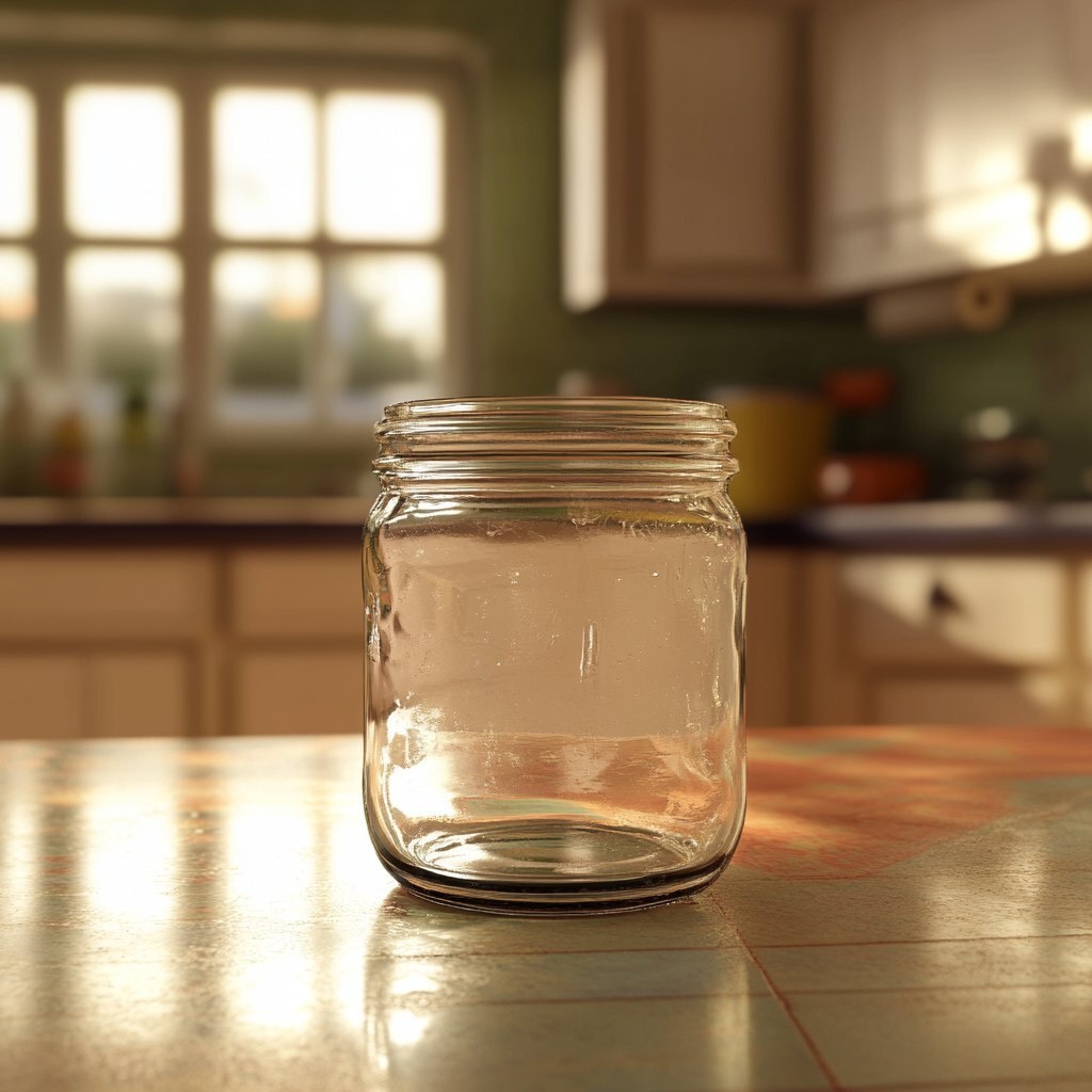 Создано на основе запроса: empty jar on the kitchen counter, pixar style