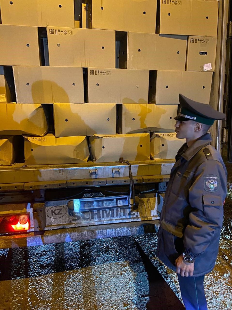 Пресечен незаконный вывоз из Оренбуржья 300 тысяч куриных яиц в Казахстан 14 апреля на российско-казахстанской границе в пункте пропуска «Маштаково» сотрудники Россельхознадзора и ФСБ пресекли попытку вывоза более 300 тысяч куриных яиц. 840 коробок перевезли из Самарской области без необходимых ветеринарных документов. Грузоперевозчик понес административное наказание, а продукцию вернули обратно отправителю.