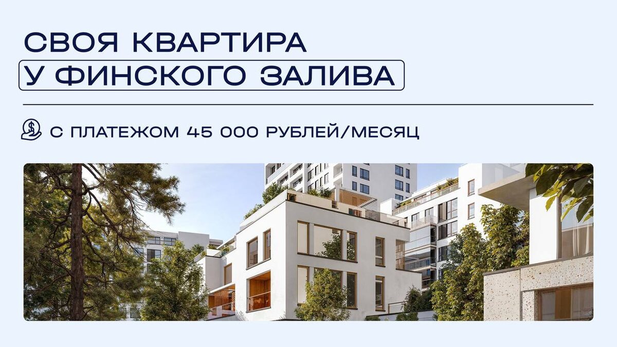 ⚡️Квартира в шаге от Финского залива с платежом 45 000 рублей/месяц в ЖК БУДУЩЕГО Ежемесячный платёж почти в 2 раза меньше, чем по аренде – и вы получаете квартиру 42 кв.м с террасой, мастер-спальней и огромной ванной комнатой, как в кино. Условия покупки: • Первый взнос – 3,1 млн ₽ • 45 000 ₽/месяц на 2,6 лет Проект с таунхаусами, двухуровневыми квартирами и урбан-виллами – это недвижимость в современном прочтении. Представьте: в шаге от вас простирается набережная Финского залива и парковые зоны. В фасады домов органично вписаны открытые стеклянные террасы с ландшафтным озеленением: ощущение, что вы на отдельном зеленом острове, без городской суеты 🌳 🟡Инфраструктура, чтобы жить наполную: в ЖК есть культурный центр с театром и лекторием, коворкинг, пространства для МК, летний кинотеатр, фитнес, школа и детский сад. 🟡25 минут до Невского, 10 минут на автомобиле до метро. Пишите «ЗАЛИВ», и мы отправим подробные расчёты или другие планировки 💬