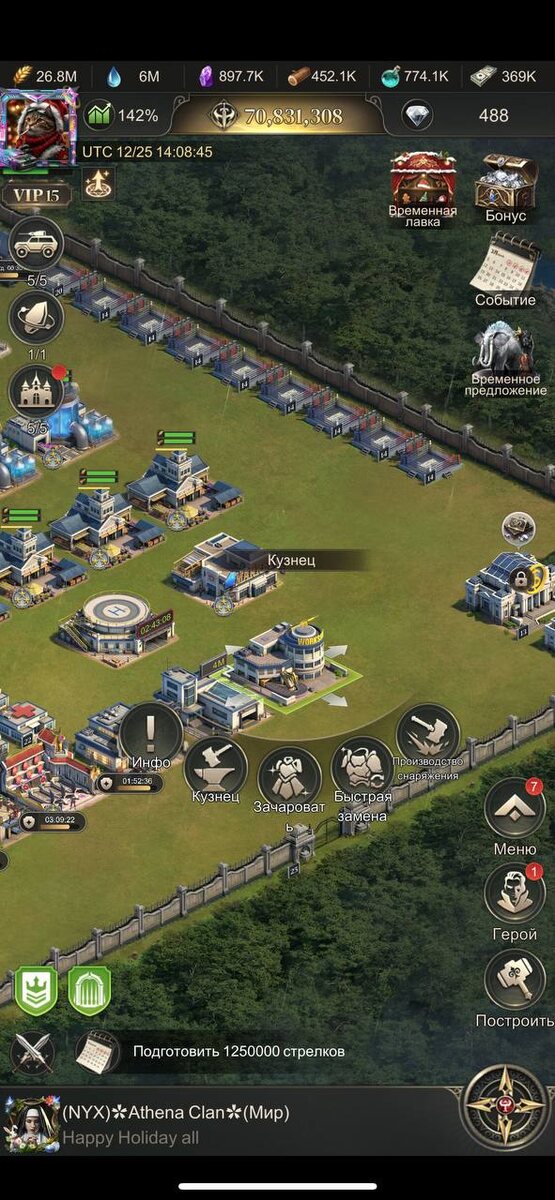 Снаряжение - это неотъемлемая часть героя, оно дает бонусы как самому герою, так и армии которая находится под его командованием 👨✈️. Его можно получить участвуя в таких событиях как «кошмарный прилив» (алтарь), проходя темное подземелье и участвуя в ратуше. А так же есть ряд событий где в игровом магазине события за заработанную валюту можно его выкупить 💴. Набрав снаряжения первым делом идем к кузнецу и начинаем объединять одно за другим снабжая своих героев лучшим снаряжением 🗡️ 🛡️ Снаряжение имеет 4 типа (Зеленое, синее, фиолетовое и золотое) у каждого типа 3 звездных уровня. Чтобы перейти на следующий уровень необходимо 3 одинаковых снаряжения. Таким образом, чтобы получить золотое снаряжение 3 звезды, необходимо 177147 штук зеленого снаряжения 1 звезды. https://docs.google.com/spreadsheets/d/1qcYDHj2CfbHMPYrItABA56Np9ApFUoIRbrUvojm3zn0/edit?usp=sharing - расчет для золотого снаряжения. Меч - для героя повышает Атаку и Очки здоровья (ОЗ). Для войск Атаку стрелков и бойцов; К
