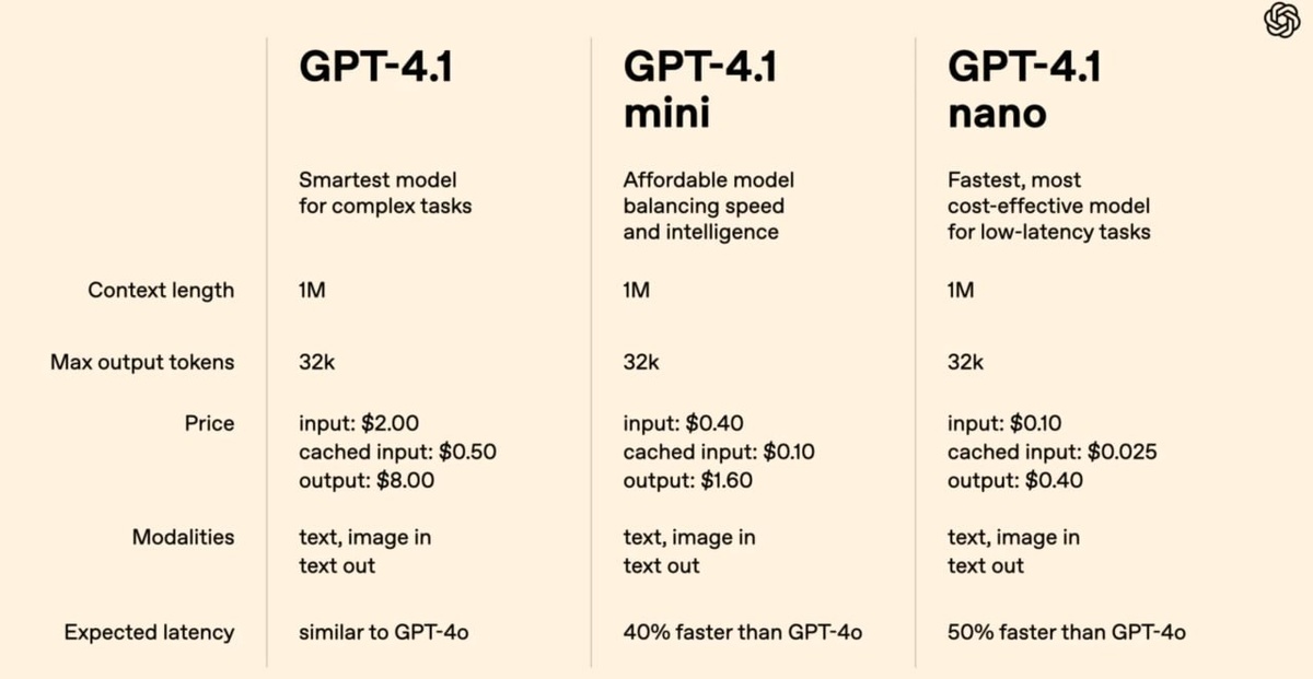 Вышли три новые модели от OpenAI для программистов: 4.1, 4.1 mini и 4.1 nano