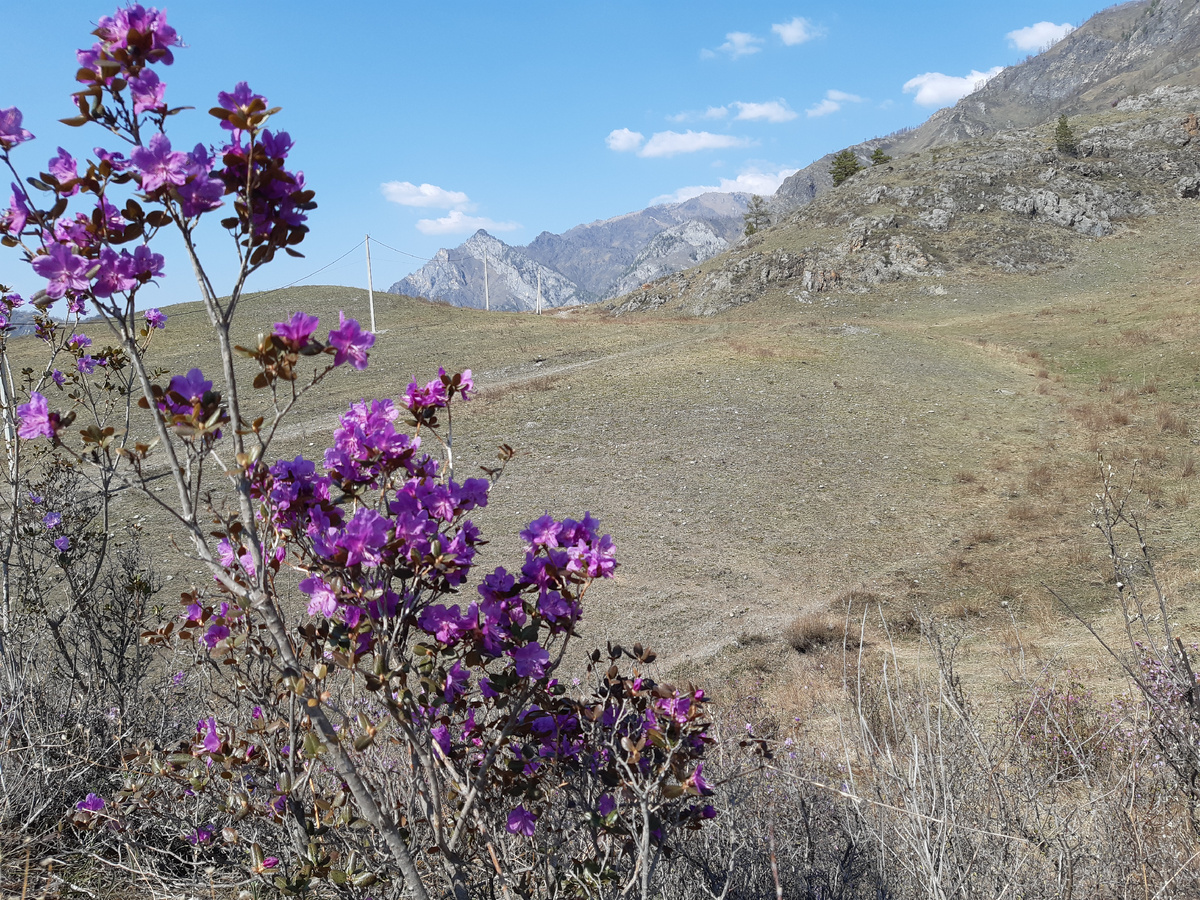 Весной 2023 года мы поехали на Горный Алтай посмотреть цветение маральника. Сначала направились в сторону Онгудая, но тепло только пришло в те края, и маральник там еще не зацвел.