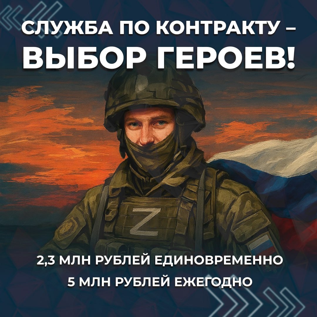 🇷🇺 Военный комиссариат ЯНАО приглашает северян подписать контракт с ВС РФ Служба по контракту — это возможность получать стабильный доход и социальные гарантии для всей семьи. Ямальцы, подписавшие контракт на службу, получают: — 2,3 млн рублей единовременно, — 5 млн рублей в год, — от 210 тысяч рублей ежемесячно в зоне СВО. Узнать обо всем подробнее можно на сайте contract89.ru Телефоны пункта отбора в Новом Уренгое: 8 (902) 693 00-59; 8 (902) 625 72-72. Срок действия контракта должен составлять не менее 1 года. ❤️ НУР. Официально