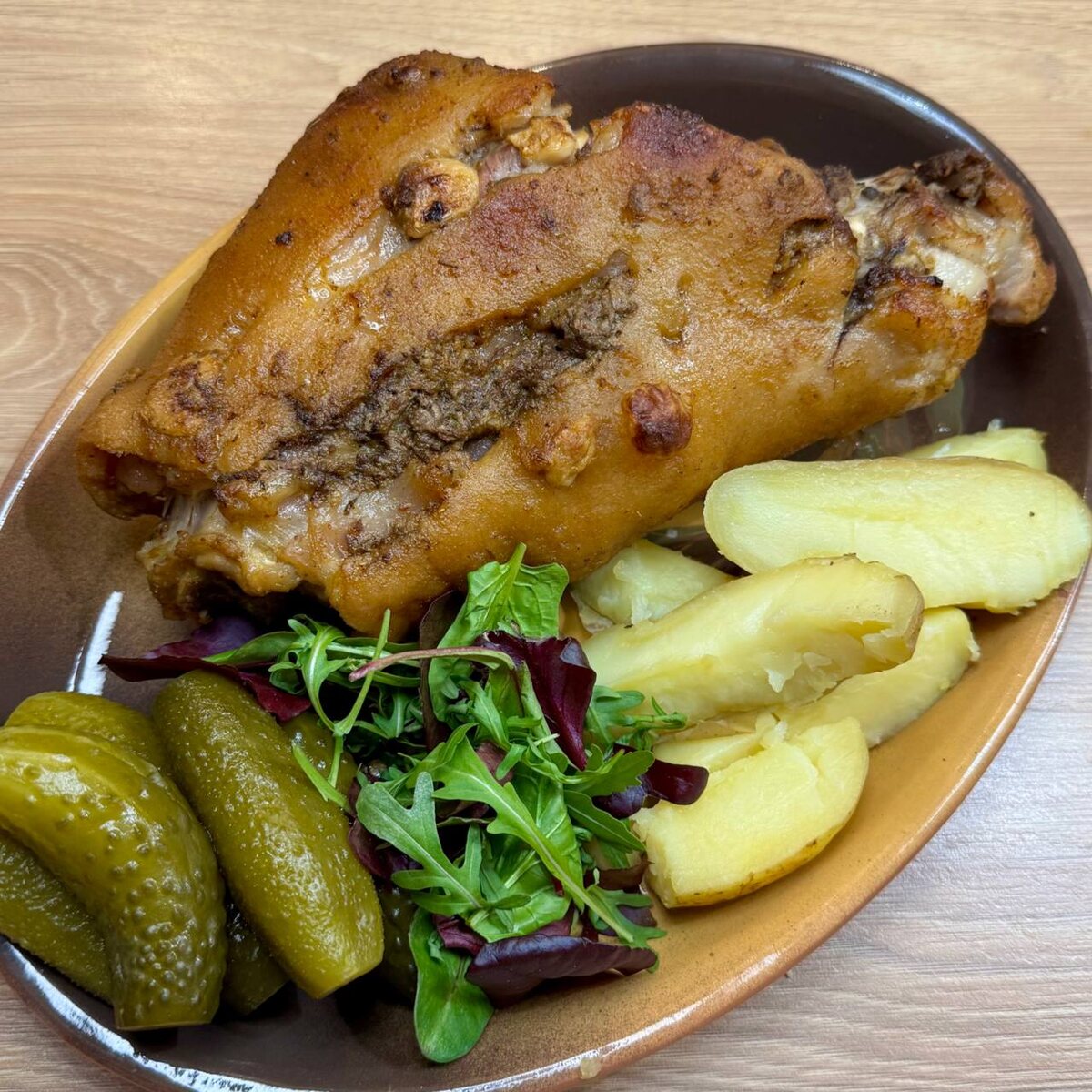 1️⃣Возьмите помытую рульку, сделайте в ней надрезы и вставьте в них зубчики чеснока.