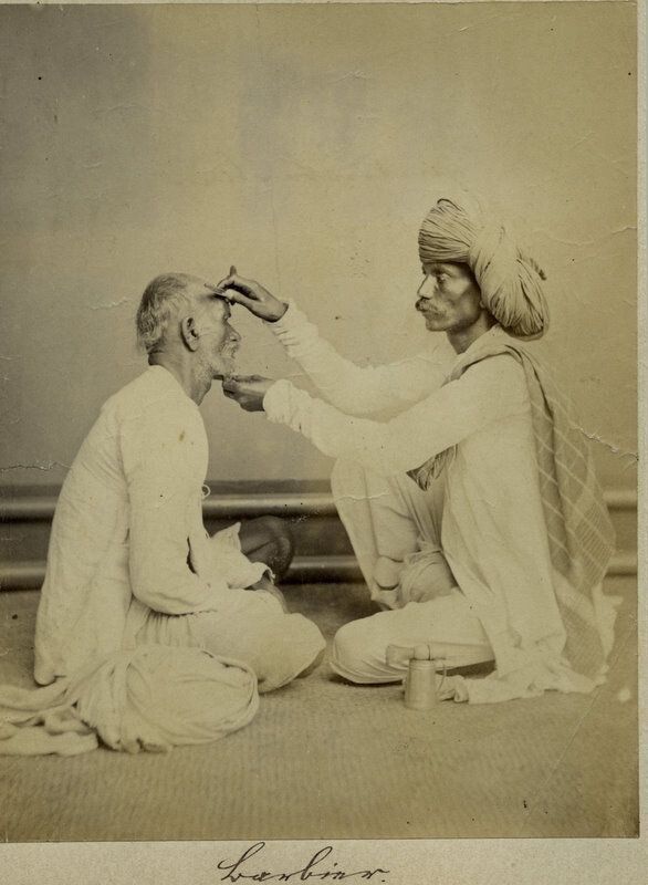⚡️ Если вдруг вы решили посетить брадобрея…. yát kṣuréṇa marcáyatā sutejásā váptā vápasi keśaśmaśrú । śúbhaṃ múkhaṃ mā́ na ā́yuḥ prá moṣīḥ ॥17॥ Когда опасным, очень острым лезвием Ты, брадобрей, бреешь волосы и бороду, Делая лицо красивым (?), не урви срок нашей жизни! (см.: Атхарваведа VIII. 2. 17). 17c. Делая лицо красивым (?) (śúbhaṃ múkhaṃ)… — Принята эмендация śúbhaṃ на śúmbhan. (Атхарваведа (Шаунака) 2007: 208). 👉 На фото: Vintage Photograph of an Indian Barber Doing his Work - 1870's #читаем_с_ОРС