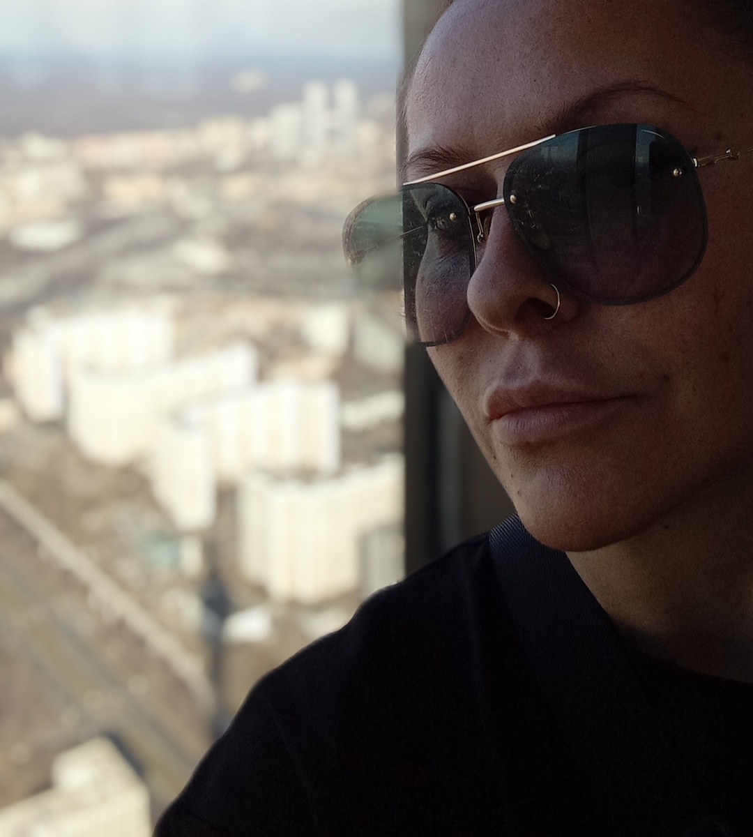 Отвалявшись на стеклянных полах, походив по небу, нарезав несколько кругов по смотровой площадке, мы с Таней решили ждать лифт для спуска. Чтобы ожидание не было скучным – неистово фотались.