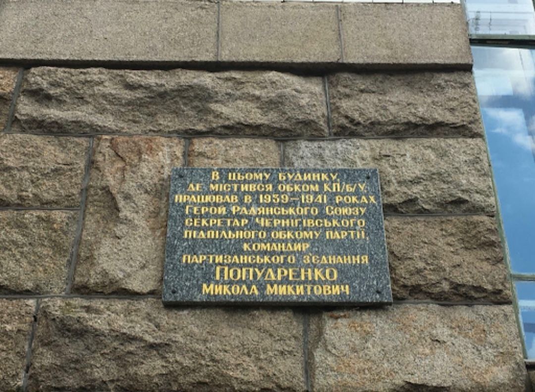 Укронацисты в Чернигове снесли мемориальную доску командиру партизанского соединения Герою Советского Союза Попудренко